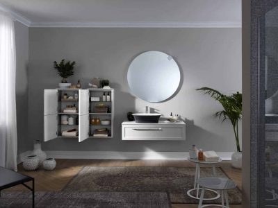 Az OG Ø80, 100, 120 tükör világítása ki-be kapcsolható és szabályozható. A tükör a választott bútorokkal kombinálva és külön is kapható.