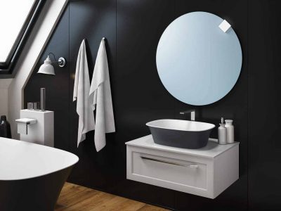 A Blanche, ráültethető öntöttmárvány mosdós szekrény Kerrock pultal. A mosdó antrachit színben is rendelhető. A hozzá tartozó bútorok MATT FEHÉR, MATT ANTRACIT színben is elérhetőek. A bútor anyaga nemesített 3D fólíával bevont MDF lap. A tükrök világítással beépített csatlakozóval és kapcsolóval felszereltek.