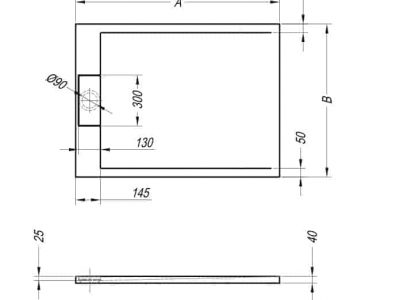 Öntött márvány zuhanytálca rejtett lefolyóval. Lehetőség zuhanykabin felszerelésére.