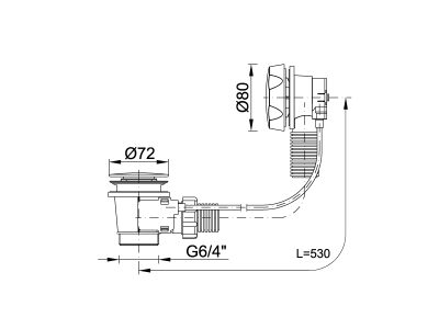 Le és túlfolyó garnitúra szifonnal. 450 mm.