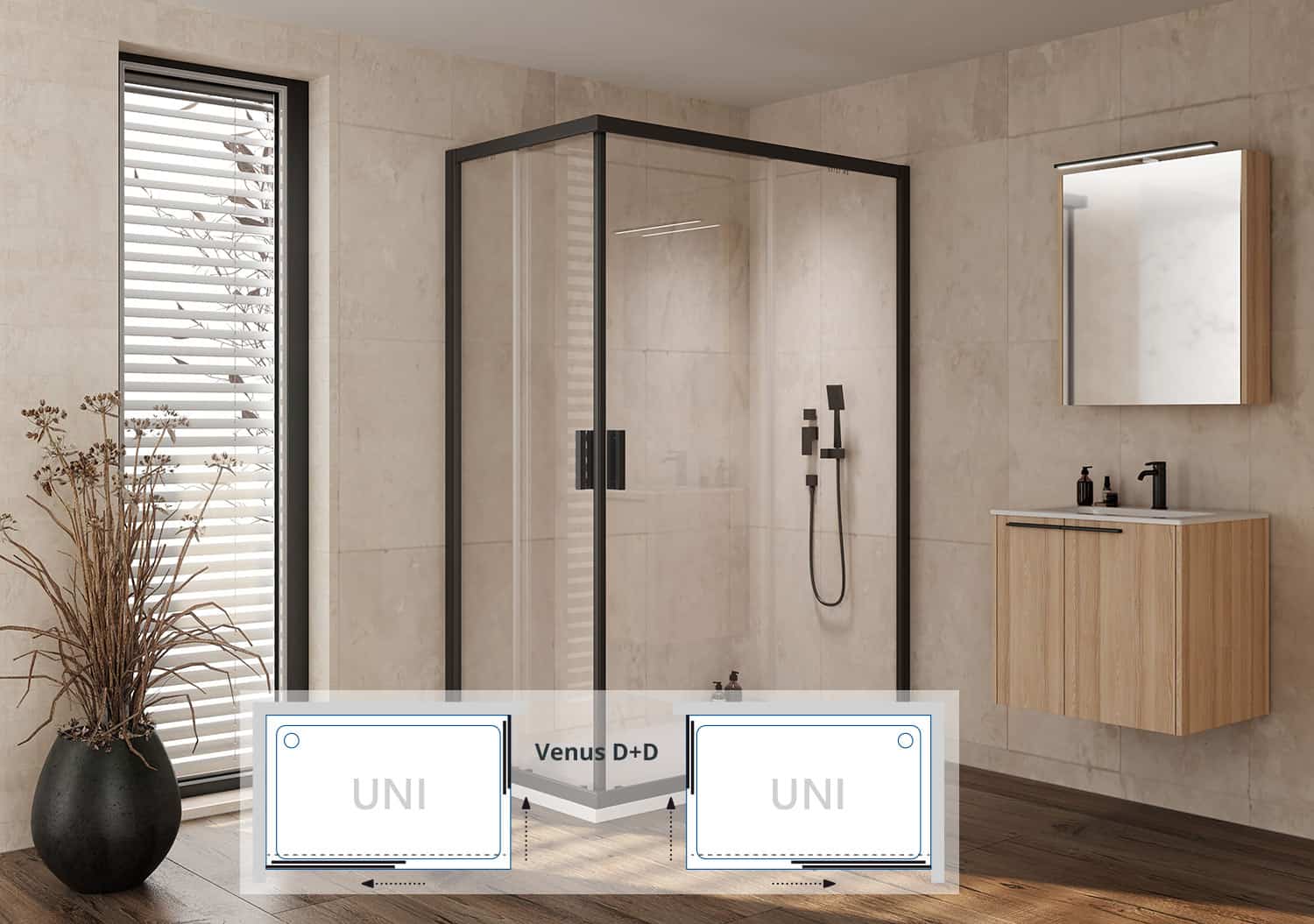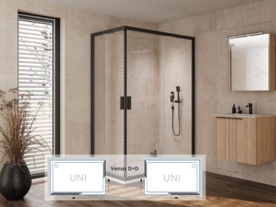 A Venus sorozatú D+D 2 db Venus D zuhanyajtóból áll össze. A két zuhanyajtó lehetséges méretvariációit lejjebb görgetve találja meg.