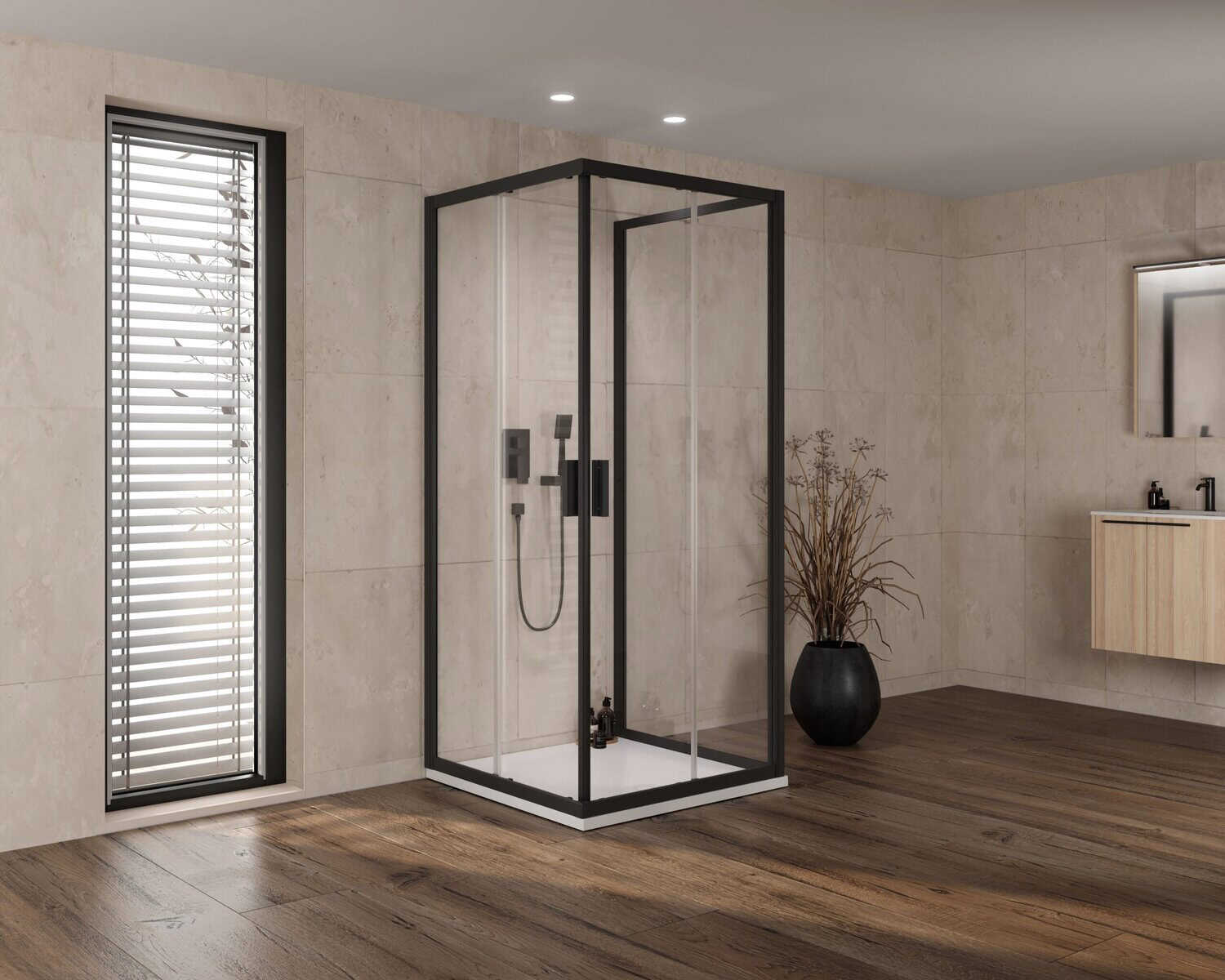 A Venus D+D+WU 2 db Venus D zuhanyajtóból és egy WU oldalfalból áll össze. A két zuhanyajtó és a WU oldalfal lehetséges méretvariációit lejjebb görgetve találja meg.